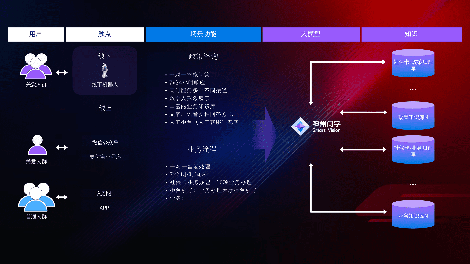 • 线上线下全覆盖:线上提供微信公众号、、、、支付宝小程序、、、政务网、、、、app多种渠道,,,与线下机器人形成完整服务体系。。。